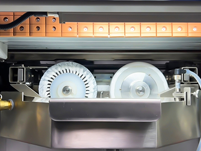 双衬:机械伺服下衬,涂胶在衬纸上(精准、机台整洁)。